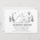 Our Greatest Adventure Baby Shower Invitaiton Invitation featuring hand drawn artwork and modern typography. Rustic tent, flowers, greenery and hand lettered typography.