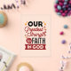 Declare your source of strength with this bold and inspiring quote: “Our Greatest Strength Is Faith in God.” Featuring clean, modern typography with vibrant accents, this faith-based design is perfect for anyone who walks boldly in God’s truth. Ideal for shirts, mugs, phone cases, posters, and stickers—whether you're uplifting yourself or gifting encouragement to others, this design is a daily reminder of where true strength comes from.