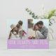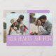 Modern and minimal wedding thank you photo card featuring a text that says "Our Hearts Are Full" with 2 of your wedding pictures. You can add another photo on the back with a message. Lemon and wisteria purple.