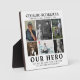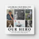 A hero's memory can live on with this photo collage memorial plaque. Featuring a 6 picture grid, their name, dates, tribute and sympathy quote. Simply upload your favorite photographs and personalize the text. Makes a wonderful remembrance keepsake for all the family to treasure.