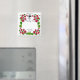 It was a bit smaller than expected, but I was too excited to check dimensions. The product itself send well printed though the grey text is a bit paint. Magnet worked perfectly on my fridge.