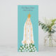 The first apparition of Fátima took place on May 13, 1917, in Cova da Iria, Portugal, to three little shepherds, Lúcia, Francisco, and Jacinta. Over the next six months, Our Lady of Fatima made several requests and shared secrets with the three seers. Today, there are two processions in the Sanctuary: the Procession of Candles and the Procession of Farewell. The image of Our Lady of Fátima is carried on a litter decorated with white roses. The rose, from which the word rosary derives, is preferred in decoration as it is the flower of Our Lady of Fátima, white in the little chapel and on the litter. The litter can contain 600 or more roses placed there still in bud and then open slowly. A large number of beautiful flowers on the litter inspired this illustration. Gift this item to a devotee of the Virgin of Fatima, I am sure it will be appreciated. There's a prayer on the back of this card. In this prayer card, the words and font can be changed according to your preference.