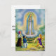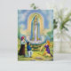 This beautiful prayer card features an illustration of Our Lady of Fatima appearing to three shepherd children, Jactina, Lucia, and Francisco, in Fatima, Portugal in 1917.