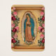 This is a beautiful traditional Catholic Spanish image of Our Lady of Guadalupe on a scroll with red and pink roses. All text and fonts are in Spanish and may be modified.