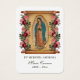 Featuring a beautiful traditional Catholic image of Our Lady of Guadalupe on a scroll surrounded with pink and red roses on each side. All text and fonts are in Spanish and may be modified.