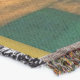 A quality printed throw has its advantages. This is a much finer weave throw than its loopier cousins, and though lighter, it is worth the investment for custom room accessorizing. The back is much prettier than the typical brown, and the fringe on the long sides very vivid, the selvage nicely done. Before photographing, I washed the throw in cold water, delicate, with a thicker woven throw the same size. On tumble dry low, this throw was dry in half the time as the other. This is a very practical quality if you use throws for furniture covers or to wrap up in frequently. The sleekness of the fabric makes it a great layer for accenting or protecting without the feeling of sitting on too much stuff. Perfect for napping or when you feel a light chill coming on. The color printing is beautiful and on this fabric, matched the design and color of my Photoshop image. This is an advantage for blending room fabrics and colors. The fringe on the short sides prints the colors from the design image and therefore varies from the side fringe. I streaked a white fractal line through the plaid pattern to give the illusion of weaving. This printed as crisp as an illusory thread, and put some white in the short side fringe, showing another advantage of print vs loomed- for artistic purposes, line lines, detail, and color integrity can be planned and preserved. My loomed throws have color limitations and more of a needlepoint texture. Print throws reproduce an exact image. The throw felt a little stiff straight out of the package, but this went away in the first delicate wash. Of course I searched the wash water for ink or bleeding and there was none.