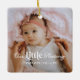 Celebrate the arrival of your precious little one with our Our Little Blessing Photo Birth Stats Keepsake Ornament. This elegant keepsake features a cherished baby photo paired with graceful typography reading “Our Little Blessing”, creating a timeless and heartfelt design. Personalise with your baby’s name and birth date to make this ornament a truly one-of-a-kind memento. The reverse side features a second photo of your little miracle with baby birth stats: birthday, time, length, and weight. Each birth stat is accompanied by an icon to represent each, along with the baby's full name. Perfect as a baby’s first Christmas ornament, a thoughtful gift for new parents, grandparents, or family members, or as a special keepsake to commemorate your newborn’s arrival. Crafted with attention to detail, this ornament preserves the joy and love of your little blessing for years to come. Design by © Moodthology Papery.