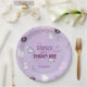 This design showcases a playful Halloween theme with soft purple background. A cute ghost, a witch hat, is accompanied by fun elements like a delicate web and a bubbling witch's cauldron, setting a festive yet sweet tone. Personalise the plates with your child's name and party details for a unique, heartwarming touch that perfectly captures the spirit of your little one's first birthday celebration.