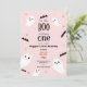 Our little Boo is turning one! Cute Halloween first birthday party invitation for your little one's special day. The modern design features a lovely soft pink texture background with little ghosts, bats, leaves, and pumpkin illustrations. Personalise with your information.