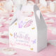 Our little butterfly pink purple gold girl first birthday favour box.