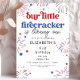 Celebrate your little spark with this "Our Little Firecracker is Turning One" birthday invitation! Bursting with red, white, and blue fireworks, this fun and festive design is perfect for a 4th of July first birthday bash. Easily editable for names, dates, and party details – it’s a firecracker of a keepsake for your little one’s big milestone!