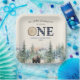 This is a Blue Our Little Lumberjack Is Turning One Woodland Forest Bear 1st Birthday Party Paper Plates!