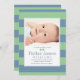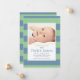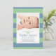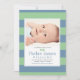 Announce the arrival of your baby boy in style with classic and simple birth announcement cards that feature a photo of your baby framed by preppy horizontal stripes and a little bow tie design accent. Mint green, slate blue, charcoal grey, and white colours.