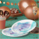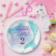 "Step into a magical undersea world with our Little Mermaid-themed birthday party plates! In lively shades of purple, turquoise, and calming blue, your guests will be transported to an underwater wonderland.