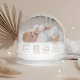 Celebrate the arrival of your precious little one with our Our Little Miracle Baby Birth Stats Photo Keepsake Snow Globe. This elegant keepsake features a cherished baby photo paired with graceful typography reading “Our Little Miracle,” creating a timeless and heartfelt design. Personalise with your baby’s name to make this snow globe a truly unique memento. The reverse side showcases a second photo along with your little one’s birth stats — including birthday, time, length, and weight — each beautifully paired with coordinating icons and the baby’s full name. Perfect as a baby’s first Christmas keepsake, a thoughtful gift for new parents, grandparents, or family members, or a special way to commemorate your newborn’s arrival. Crafted with care and attention to detail, this snow globe preserves the joy and love of your little miracle for years to come. Design by © Moodthology Papery.