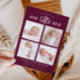 Simple and minimalistic birth announcement card featuring hand lettered typography that says "our little one" with 4 photo on the front. The background is cranberry.