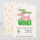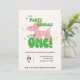 Get ready to pop, twist, and celebrate with this playful invitation from Yellow Moon Atelier! A shiny pink iridescent balloon animal steals the show, while bold green bubble script joyfully announces, "Our little party animal is turning one!" This design is equal parts fun and fabulous—just like your little one!