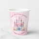Our LIttle Princess is Turning One Birthday Paper Cups. Join us in celebrating a magical milestone as our little princess turns one! This adorable paper cup features a dreamy clouded pink background with a charming castle in virbrant shades of pink, blue, yellow, and purple. The cute child's font in bright pink adds a playful touch, making this the perfect paper cup to announce your little one's magical day. Get ready for a royal celebration filled with fun, laughter, and joy!