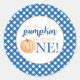 Our Little Pumpkin blue plaid first birthday Classic Round Sticker