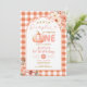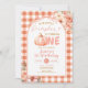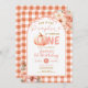 Cute Boho Bow Our Little Pumpkin is turning one birthday party gingham fall peach autumn floral invitation