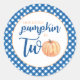 Our Little Pumpkin is Two blue plaid 2nd birthday Classic Round Sticker
