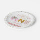 Celebrate your baby's first milestone this fall time with your friends and family to share in the joy of your little one. This cute paper plate features a watercolor pink pumpkin with fall roses, greenery foliage, gold glitter and easy to personalise template wording.