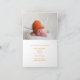 This beautiful, modern Thanksgiving newborn photo folded card features a photograph of your sweet new baby under the words Our Little Pumpkin in orange. This pretty autumn photograph with trendy white wood behind the patch of pumpkins is an elegant birth announcement card for Halloween or Thanksgiving.
