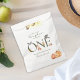 Our little pumpkin is turning one, with woodland animals, first birthday thank you favour bags. Cute watercolor woodland animals surround a clean bold "one" with watercolor pumpkin details. Soft orange and green colours. First birthday thank you favours are an important detail in hosting a cute autumn first birthday party. This and other 1st birthday party supplies can be found in the "Our Little Pumpkin Woodland Animals First Birthday Collection" in The Gathering Designs store.