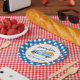 Our little pumpkins are turning one twin 1st birthday plates with watercolor pumpkin and blue truck and blue plaid plaid. Fall birthday theme.