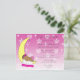 Sweet magenta girl's baby shower hand drawn baby sleeping on the moon invites. This little baby is darker skinned to represent a little black baby. <3