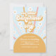 Our Little Sunshine is One first birthday invitation with daisies and boho fonts and colours.