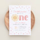 Celebrate your little one's 1st birthday with this adorable invitation, featuring a happy yellow sun with yellow and pink details.