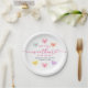 Complete your sweetheart-themed baby shower table setting with charming candy heart baby shower paper plates that add a sweet Valentine-inspired touch to your celebration. The design features colorful conversation heart illustrations arranged around the layout with playful phrases like “It’s a Girl!”, paired with elegant pink script reading “Our Little Sweetheart Is on the Way.” The paper plates can be personalized with the mom-to-be’s name and baby shower date, displayed neatly beneath the main wording for a polished look. Perfect for February baby showers and Valentine’s Day baby shower themes, these paper plates coordinate beautifully with sweetheart-themed décor for welcoming a baby girl.