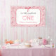 This charming sweetheart-themed birthday party banner is perfect for a little girl celebrating her first birthday near Valentine’s Day. The design features graceful script lettering on a backdrop of white stripes and delicate watercolor hearts, finished with an adorable bow for a lovely, girly touch.