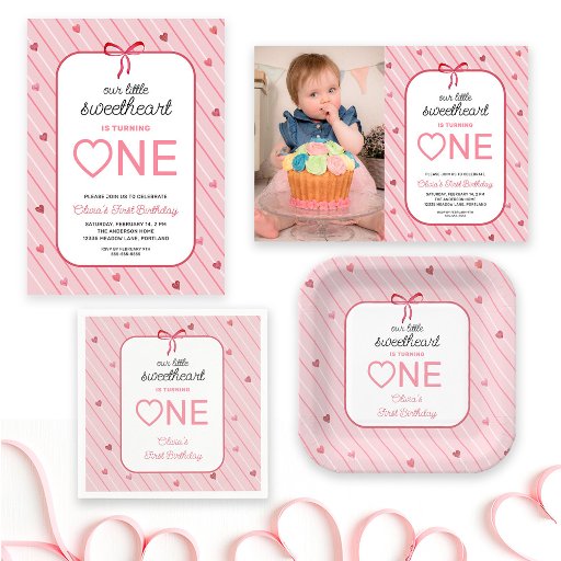 Our Little Sweetheart Is One Hearts Bows Birthday Invitation