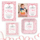 This charming sweetheart-themed birthday invitation is perfect for a little girl celebrating her first birthday near Valentine’s Day. The design features graceful script lettering on a backdrop of white stripes and delicate watercolor hearts, finished with an adorable bow for a lovely, girly touch.