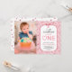 This charming sweetheart-themed birthday invitation is perfect for a little girl celebrating her first birthday near Valentine’s Day. The design offers space for a photo and features graceful script lettering on a backdrop of white stripes and delicate watercolor hearts, finished with an adorable bow for a lovely, girly touch.