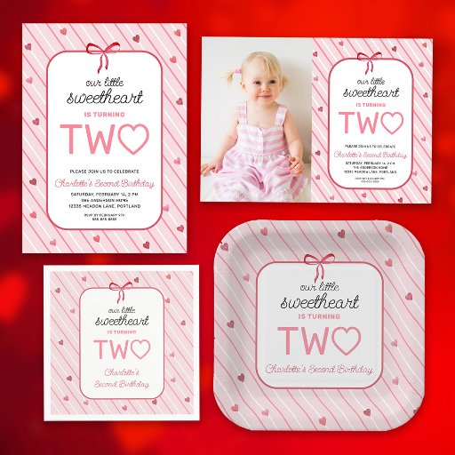 Our Little Sweetheart Is Two Hearts Bows Birthday Invitation