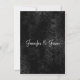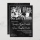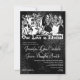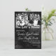 Here is a unique Halloween Wedding Invitation in black and white with a skeleton bride and groom in a misty fog in silver. There is a skeleton wedding party at the top celebrating with the bride and groom, and the words "Our Love is Eternal". These make great Halloween Wedding Invitations and Day of the Dead Wedding Invitations. The background also has a black flourish floral print. Just add your own wedding invitation wording to the template or use the "Customise It" button to move things around. The template wedding invitation sample reads "Together with our families, we invite you to witness as we "Bride and Groom's Names" proclaim our eternal love for one another in marriage" and goes on to list the wedding ceremony details. Matching RSVP reply card also available.