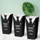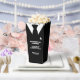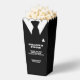 Our Love is Popping Wedding suit and tie Favour Boxes from Ricaso. A fun popcorn themed favour box for your wedding guests. Fill it with popcorn for a fun wedding addition. Add the couples names and date of wedding (or other text) designed with a black suit and tie (other colours available in store, perfect to mix and match)