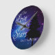 Our love is written in The Stars Night Sky Stars Name Round Clock . " OUR LOVE IS WRITTEN IN THE STARS " written in a beautiful script font in white on a night sky starry background . Customize it by changing the names . A perfect Home Decor Product for this holiday season. A keepsake to celebrate Family . For any further customization , feel free to contact me at mypaperlove2021@gmail.com