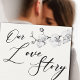 Discover a moment of serene beauty with this modern romantic black and white wedding invitation, embellished by delicate hand-drawn white orchids. This invitation evokes a sense of calm and tranquillity, appealing to the modern bride who desires a wedding infused with timeless elegance and peaceful harmony. A modern romantic, elegant boho design that features simple, modern typography and accents of modern calligraphy, as well as the title "Our Love Story".