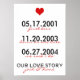 All of your important dates captured in one graphic. Customise this poster with the dates of your first kiss, your engagement (down on one knee) and your wedding (we said i do). This makes a great anniversary gift or an awesome wedding gift.