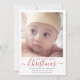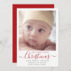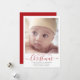A simple minimalist design for this holiday birth announcement card. The design features a large photo with Our Merry Little Christmas in green typography. Personalise with the name, birth date, birth stats and parents names. The reverse side is coordinated in red
