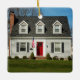 This elegant "Our New Home" keepsake ornament for new homeowners features a photo of the home with custom text that can be personalized with the year, your family name, and street address.The red and black text and the white background can be customized. Makes a wonderful housewarming gift!