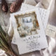 This illustrated change-of-address postcard captures the hush of fresh snowfall outside and the glow of a crackling fire inside — complete with soft pillows, alpine views, and a cup of something steamy just off-frame (probably mulled wine). It’s a peaceful little note that says we’ve moved, with just enough style to make your old neighbours jealous.