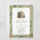 Embrace the beauty of a vintage-inspired design for your baby shower with the touching sentiment, 'Our Next Chapter Begins…'. This charming illustration features a carefully stacked collection of antique books, their spines worn with age, and delicate leaves gracefully intertwined around them. The books are set against a white, rounded-rectangle backdrop, subtly framed by an underlay of organic leaves and aged look faux kraft paper, creating a nostalgic and rustic atmosphere. This design evokes a sense of timelessness, perfect for celebrating the beginning of a new chapter in life.