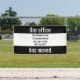 This black and white outdoor banner has three fields. Together the black fields say ' Our office has moved'. Use the white field to customise your banner with your company's name, address, and phone number.