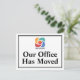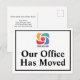 We have a new address moving postcards for a modern business or chic corporation looking to update their clients on a new location. Our office has moved. Simple company change of address cards with your custom corporate logo. Customise the change of address on the back.