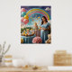 Step into a serene and whimsical garden setting with this heartwarming wall art, featuring a pregnant woman surrounded by rainbows, sunshine, and fluffy clouds. The scene captures the essence of a joyful baby shower with a decorated table full of cupcakes, gifts, and baby-themed decorations, all in soft pastel tones. An elegant quote, “Our Rainbow Baby is Coming,” adds a touching sentiment, beautifully framed in gentle, flowing lettering. The soft brushstrokes and warm pastel colours create a welcoming atmosphere, making this piece perfect for nursery decor or as a special gift for expecting parents celebrating their little miracle.